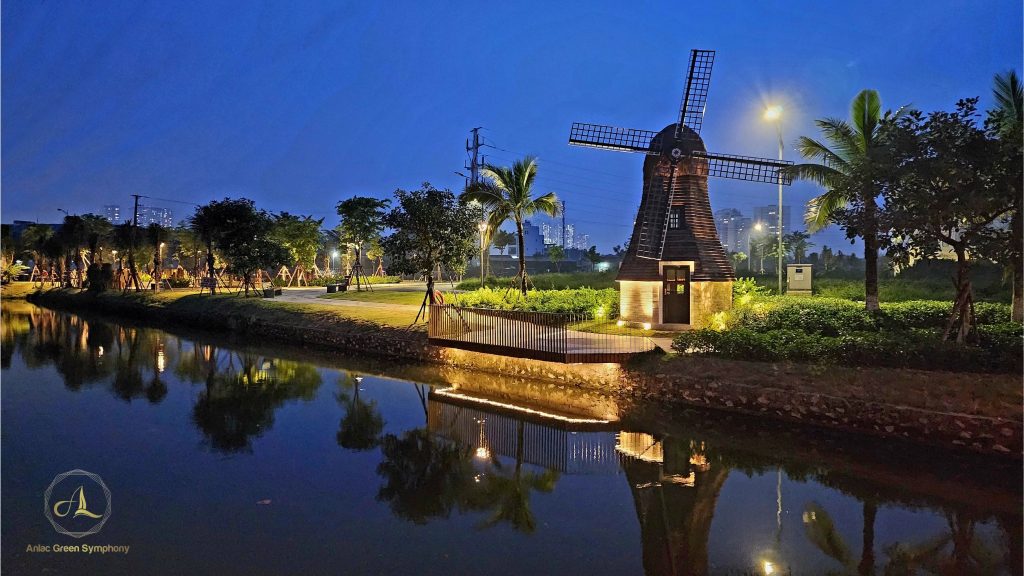 Nhiều gia đình cũng tận hưởng cảnh đêm như chị Phương Hoa và hào hứng ghi lại những khoảnh khắc Anlac Green Symphony khi đêm về. “Các bé nhà tôi thường so sánh cối xay gió gần nhà khi lên đèn giống như chuyện cổ tích vậy. Tối nào gia đình tôi cũng đi bộ, đạp xe dọc công viên với dòng kênh xanh mát, vừa để gần gũi với các con hơn vừa để các bé hiểu được tầm quan trọng của việc rèn luyện sức khỏe. Tôi nghĩ những hình ảnh đẹp này sẽ tạo nên ký ức tuổi thơ đáng nhớ cho các con, chị Thu Huyền chia sẻ.